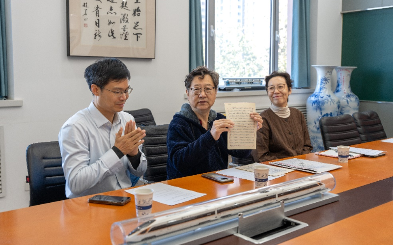捐赠仪式上,魏宗燕先生将1986年金士宣教授关于铁路线路命名问题的亲笔信《〈关于我国铁路网各条线路名称的问题〉》、读者来信及相关编辑往来信件正式捐赠给交通运输科学馆。孙冬梅书记代表学院向魏宗燕先生颁发捐赠证书,双方合影留念。