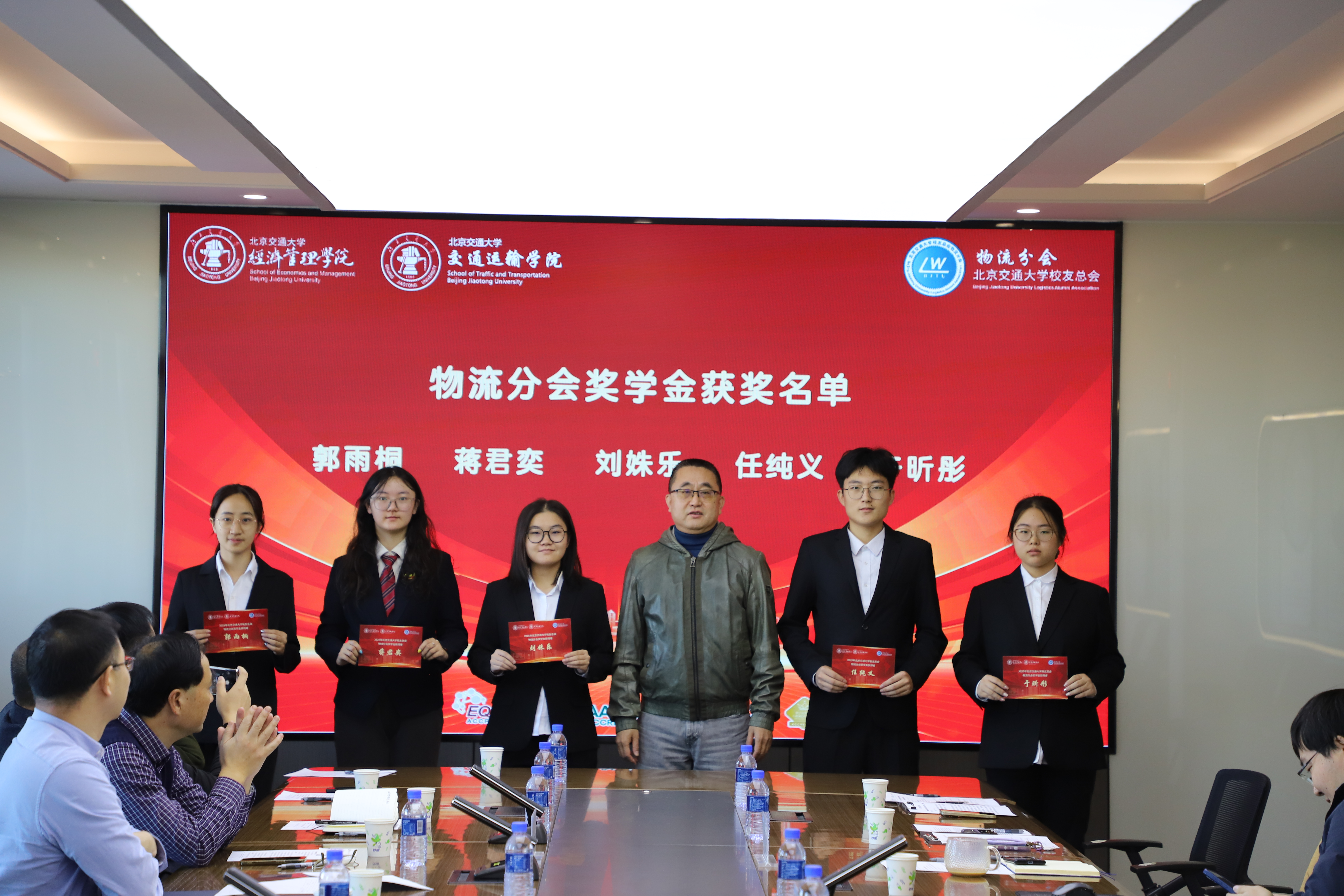 物流分会轮值会长李峻,理事黄宁、刘伟、沈吉仁、孙学柏和谢会忠等校友,副秘书长、经济管理学院物流管理系副主任彭春,信息管理系助理教授路守望,经济管理学院和人妻av 校友外联中心老师及获奖学生共同参加了上述活动。