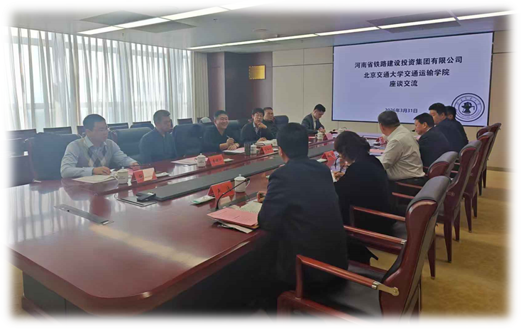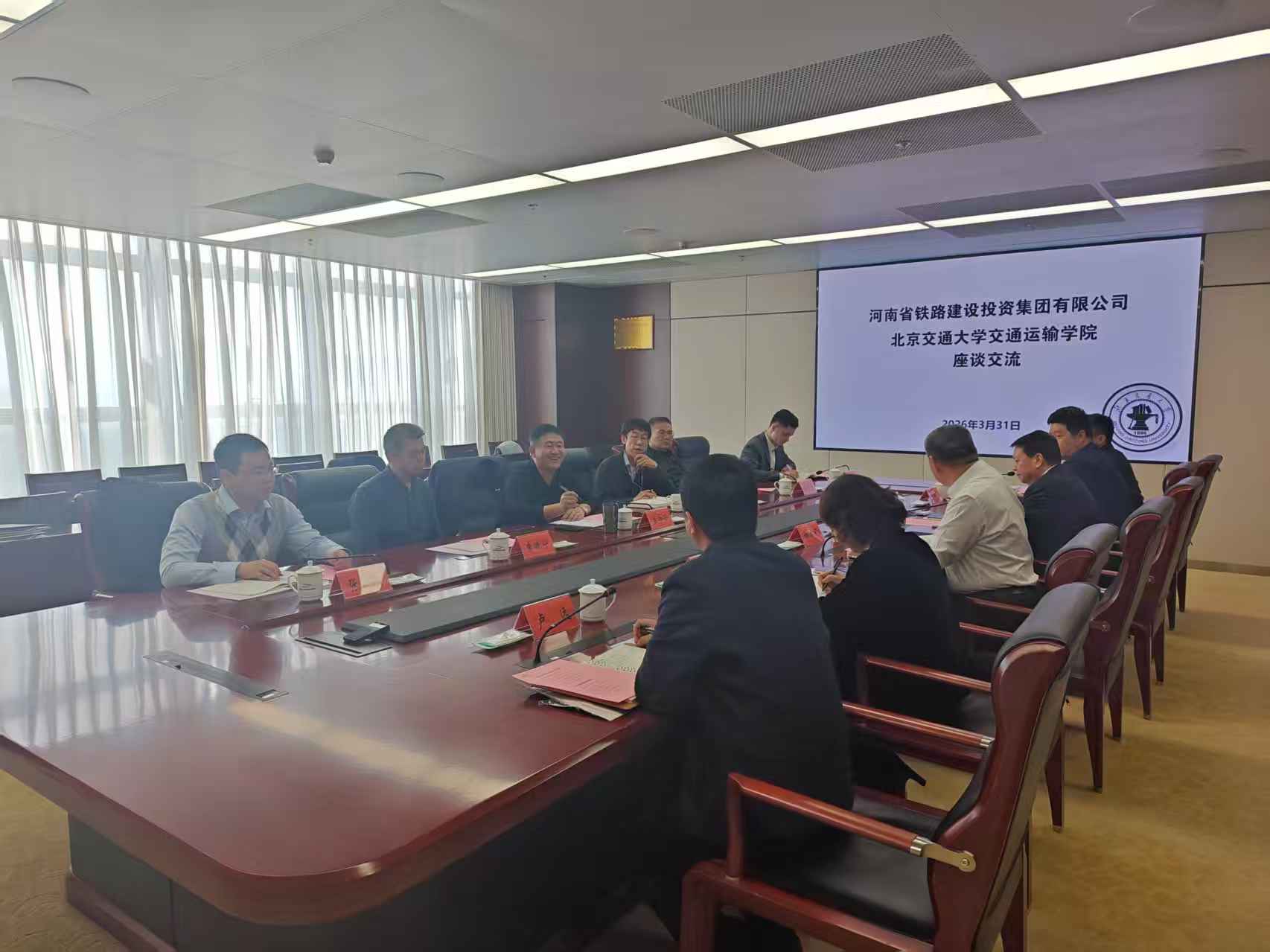 3月31日下午,河南铁建投集团党委书记、董事长柳建民在集团总部与人妻av 院长孟令云一行举行座谈,双方围绕铁路物流高质量发展、高铁快运体系建设及校企合作等事宜进行深入交流。集团副总经理高洁及相关部门、单位负责人,人妻av 教授张晓东、朱晓宁、魏玉光等专家参加座谈。